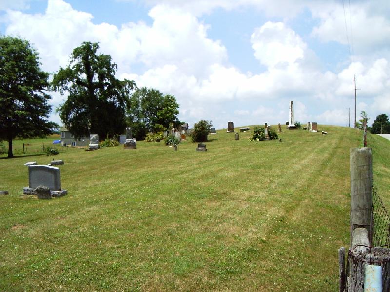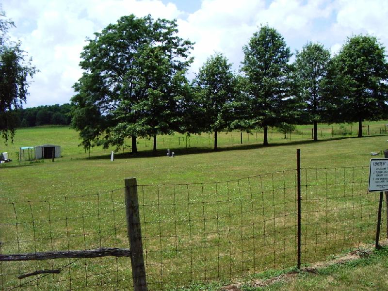 The location of a number of marked and unmarked graves for George and related family members may still be readily located near Okeana, Butler County, OH. Directions: From the Cincinnati area, take state road 126 through Ross and Shandon to Okeana. As you follow 126 to the NW, the Okeana-Drewersburg Road forks to the left in Okeana shortly before you reach the only bank office we saw in town. Still in or very near town, you cross a one-lane bridge. South Dwyer Road is a right turn, just after the bridge, and is clearly marked by a road sign. In approximately one mile, the small cemetery is clearly visible on the left (due to numerous tombstones), directly adjacent to the road, just beyond a private home on the same side of the road, and across the road from a cornfield. There is no flat parking available; but I was able to pull off into, then beyond a shallow ditch on the cornfield side of the road, leaving the car parked strongly tilted toward the road. (I wouldn't attempt that with a top-heavy vehicle or trailer. Perhaps one of the two private homes nearby would permit parking for a brief visit.)