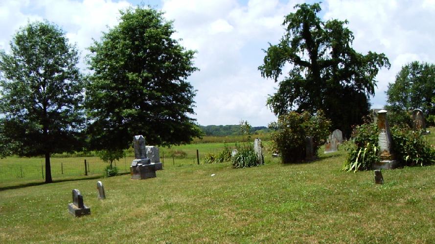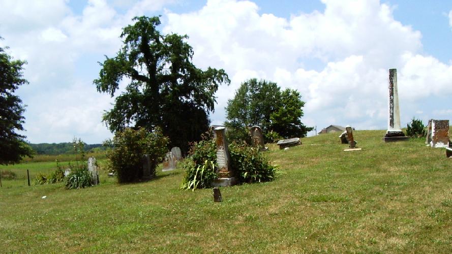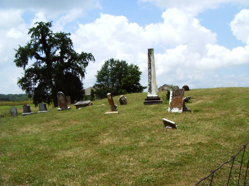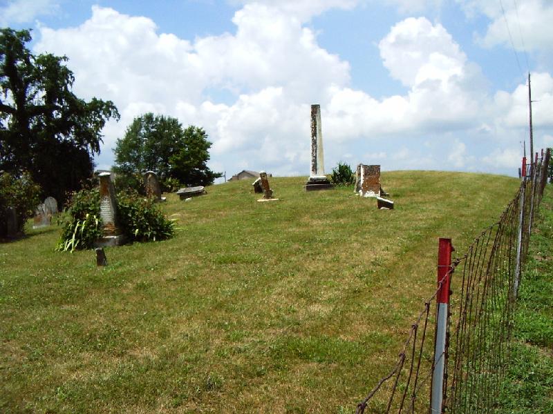 Biographical Cyclopaedia of Butler County, Ohio: "On the hill, north-west of Okeana one mile, is the old GEORGE burying-ground, on the south side of the original Scipio road, on Section 17. This yard was originated as a private ground. Quite recently an addition of three acres has been made to it. The inscriptions will tell the rest. Christopher ARMSTRONG, died August 5, 1835; aged 38. John McLAIN, Sen., born in 1768; died June 18, 1842. In memory of Rachel DAVIS, who died February 13, 1839; aged 39. In memory of Meshach DAVIS, born September 4, 1764; died October 11, 1845. In memory of Elizabeth, consort of Madison CONGLE, who departed this life August 20, 1839; aged 23. ["Cougle" on tombstone] Joshua GEORGE, died February 25, 1836; aged 35. A cedar tree ten inches in diameter has grown over this grave. In memory of Isabelle, wife of Evan JENKINS, who died November 14, 1832; aged 37. Jemima, wife of Thomas JOLLIFFE, born November 17, 1790; departed this life March 31, 1847. Archey HANDLEY, departed this life August 7, 1842; aged 53. In memory of Rebecca, wife of Archey HANDLEY, who departed this life November 14, 1839; aged 50. Catherine, wife of Joshua GEORGE, died October 29, 1862; aged 61. Samuel PATTERSON, died December 5, 1853; aged 84. John BROWN died August 6, 1865; aged 50. |