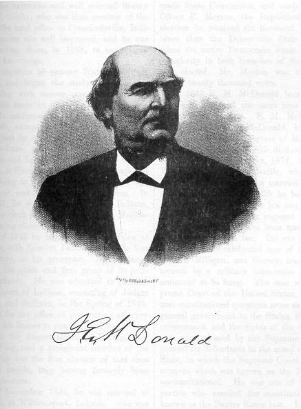 In 1868 E. M. McDONALD became the law partner of his father, & the next year Addison L. ROACH retired from the firm. E. M. McDONALD died Jan 1, 1873. Frank B. McDONALD, his youngest son, has since become the law partner of Mr. McDONALD.