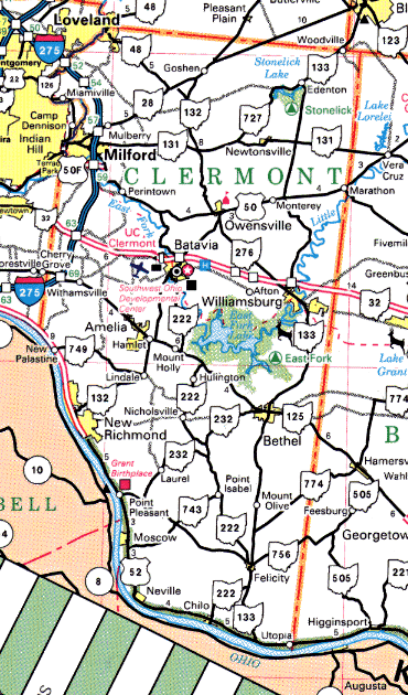 The placement is only to show the relationship of Preble, Montgomery, Greene counties to the north, Butler and Warren counties in the middle, and Hamilton and Clermont counties to the south.
