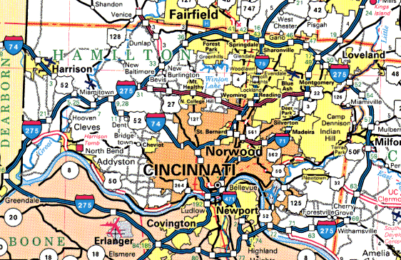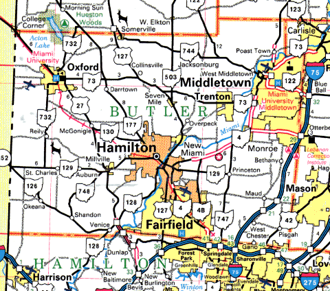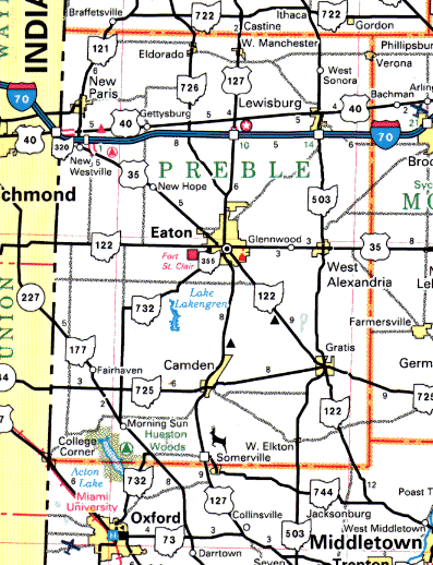 The placement is only to show the relationship of Preble, Montgomery, Greene counties to the north, Butler and Warren counties in the middle, and Hamilton and Clermont counties to the south.